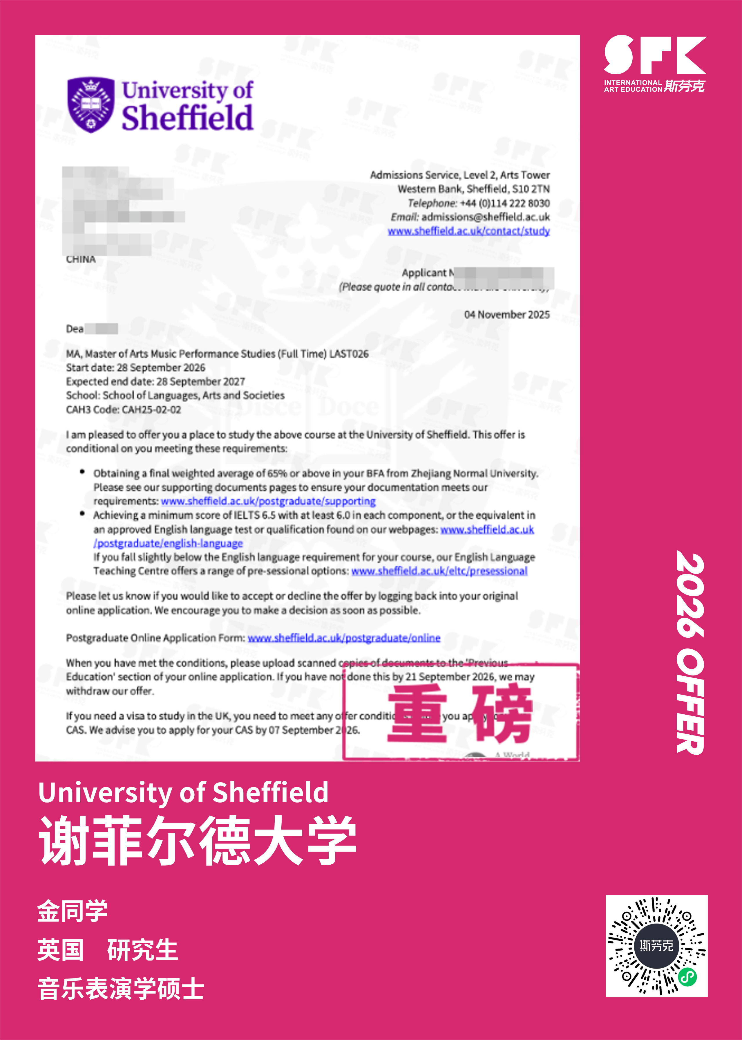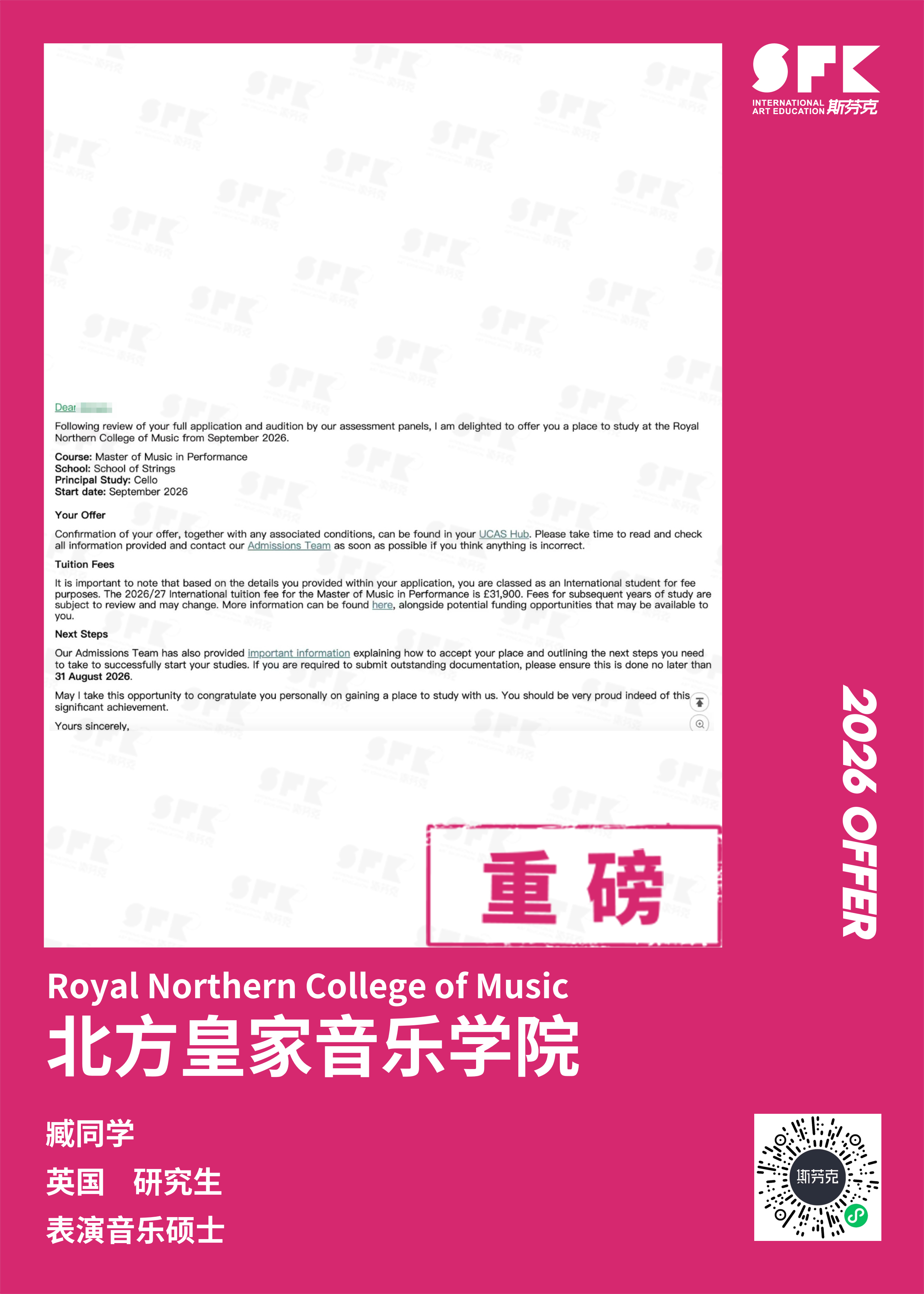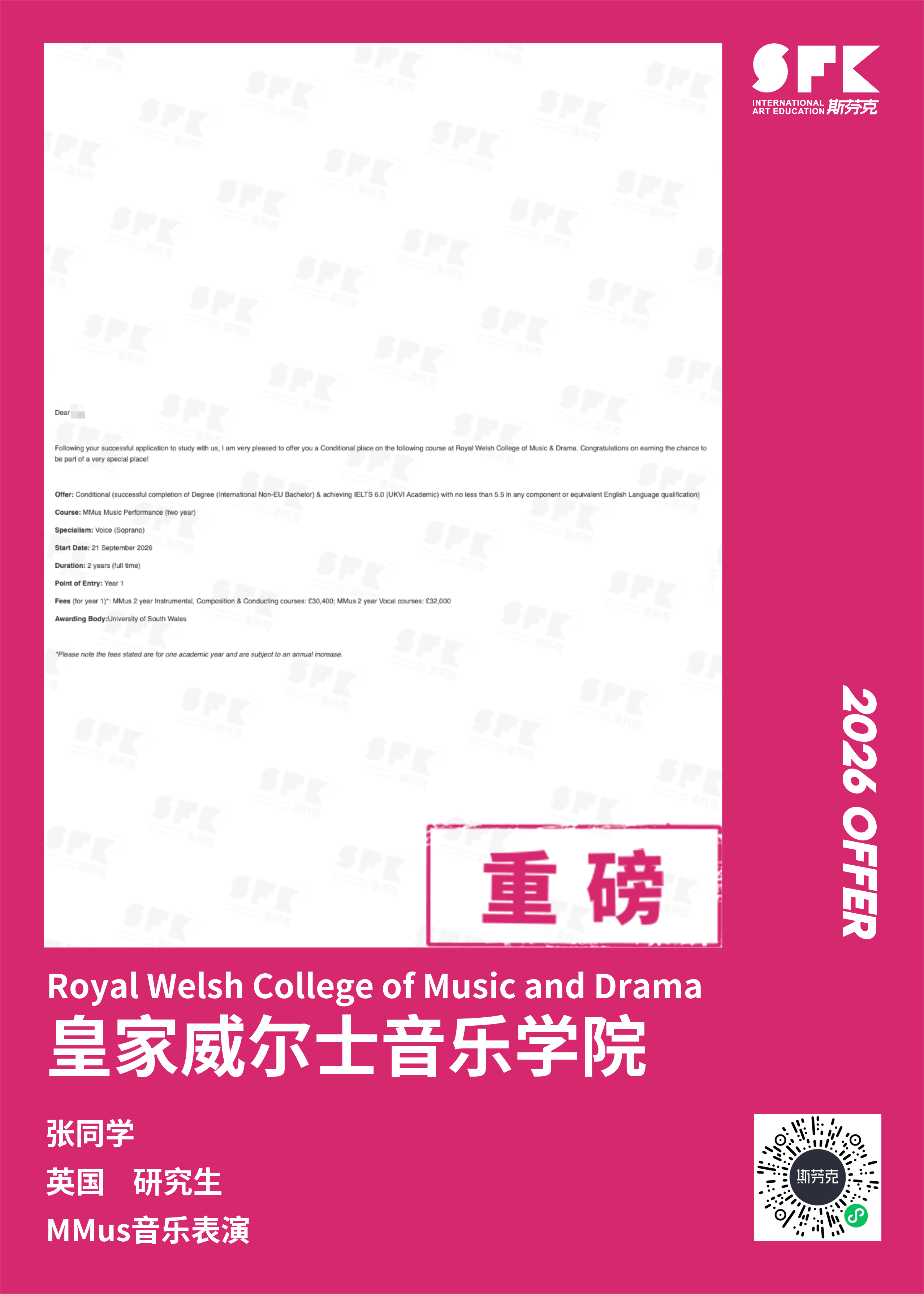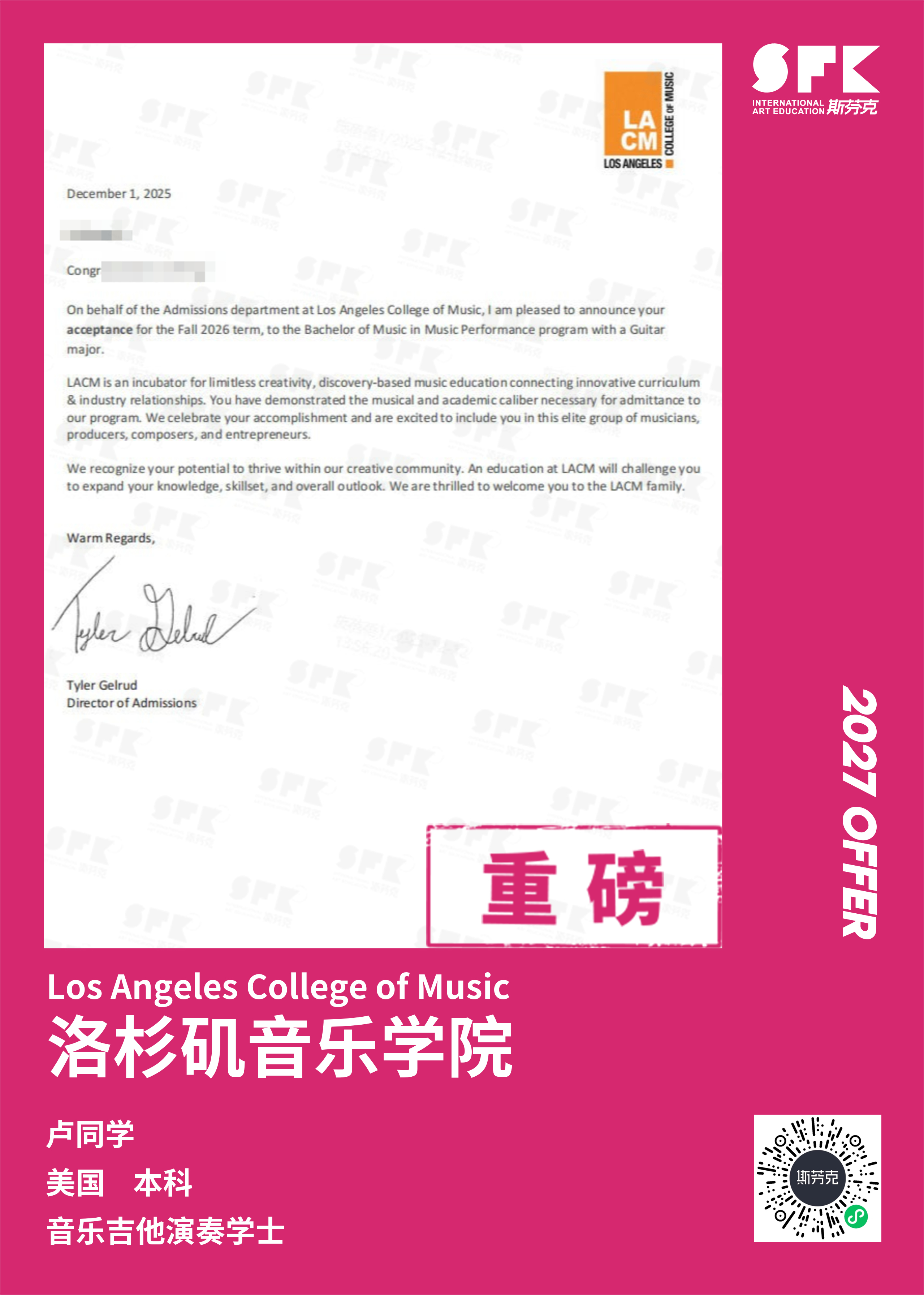 斯芬克音乐已帮助学员获得越来越多的国外音乐院校Offer