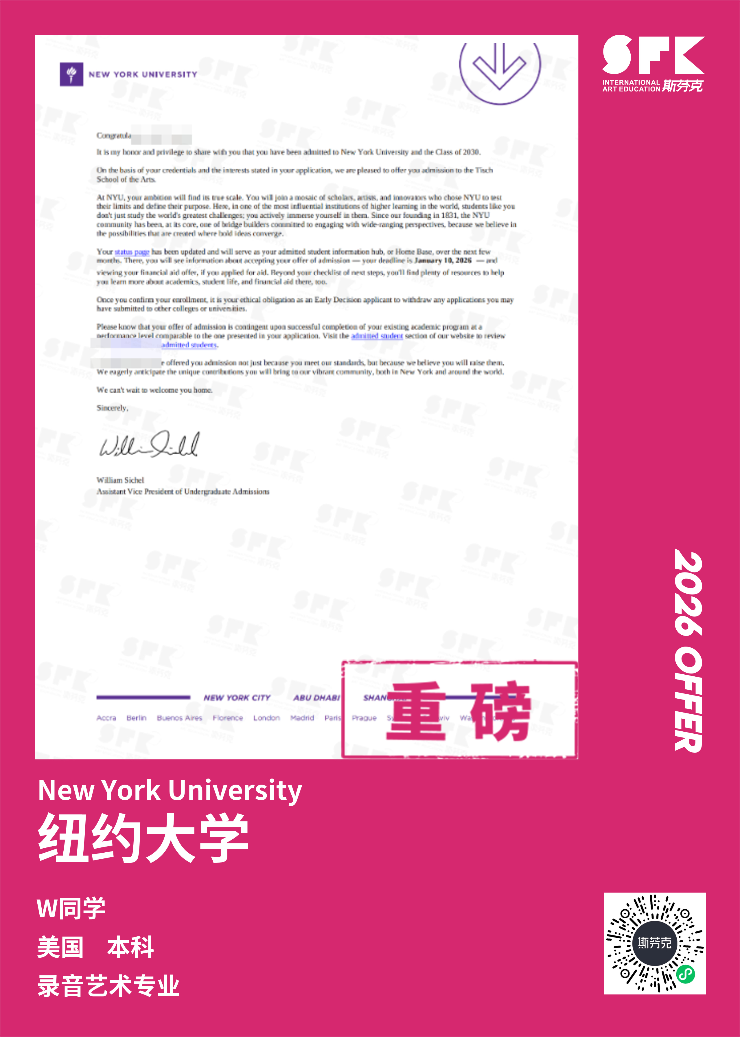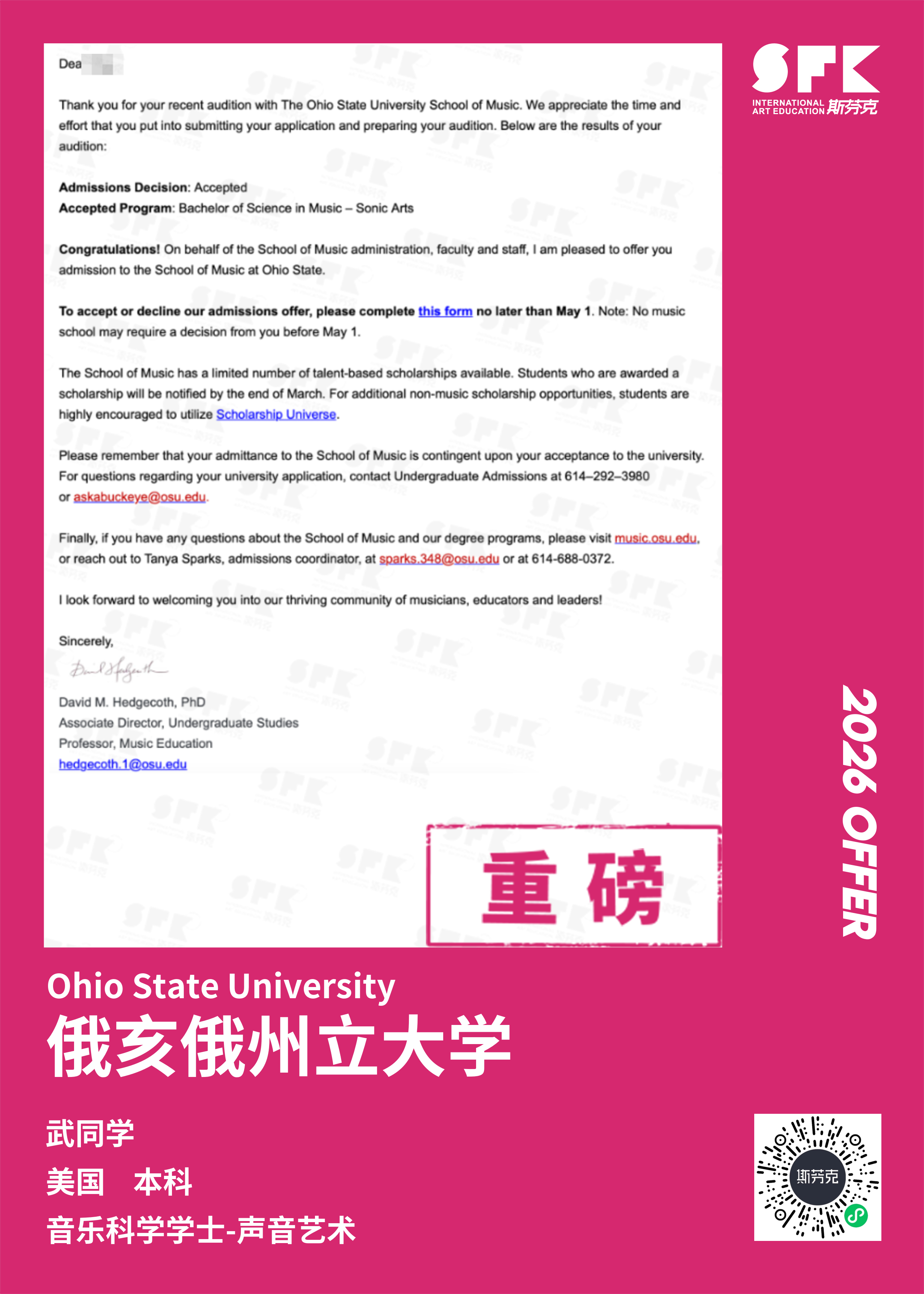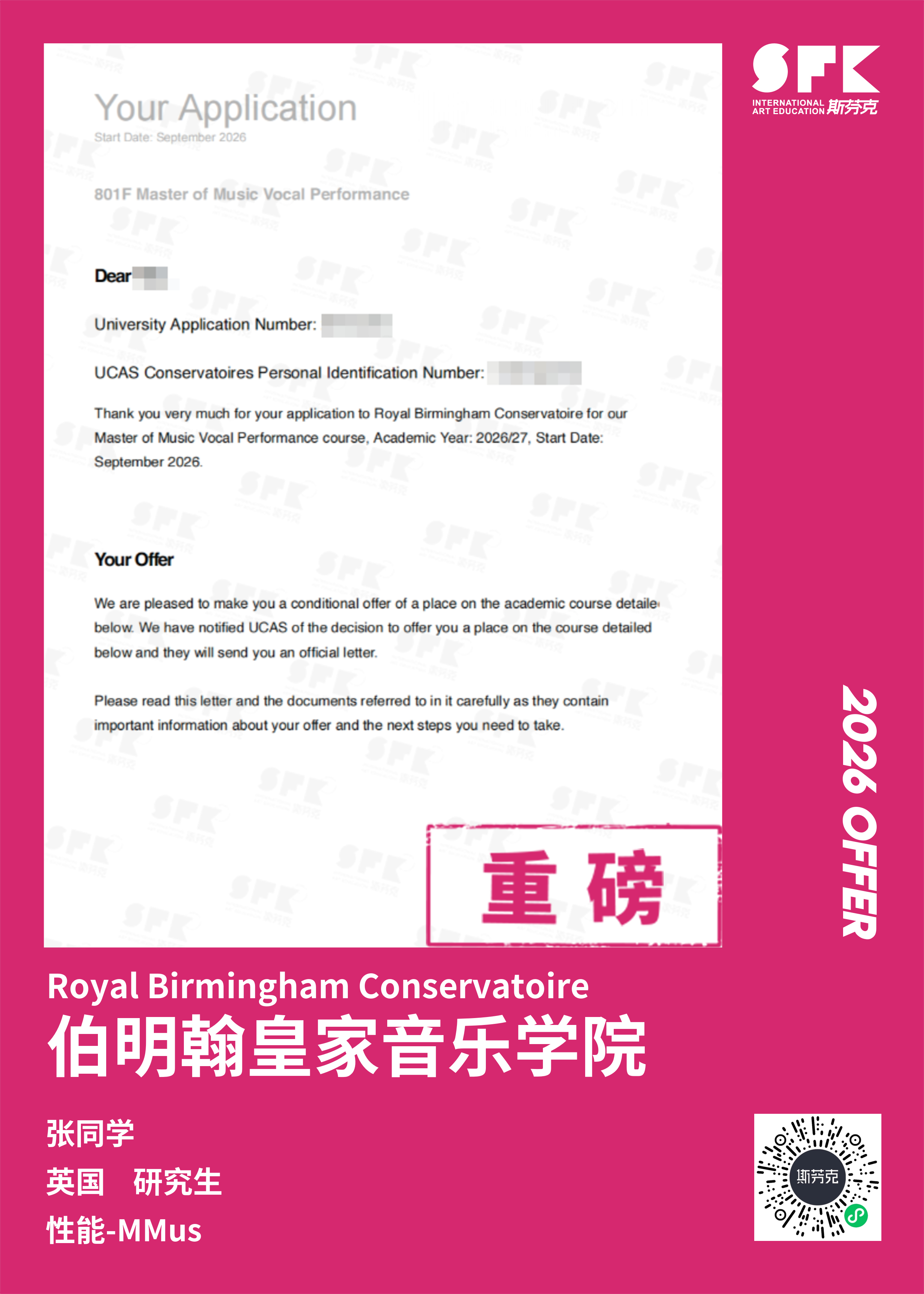 斯芬克音乐已帮助学员获得越来越多的国外音乐院校Offer
