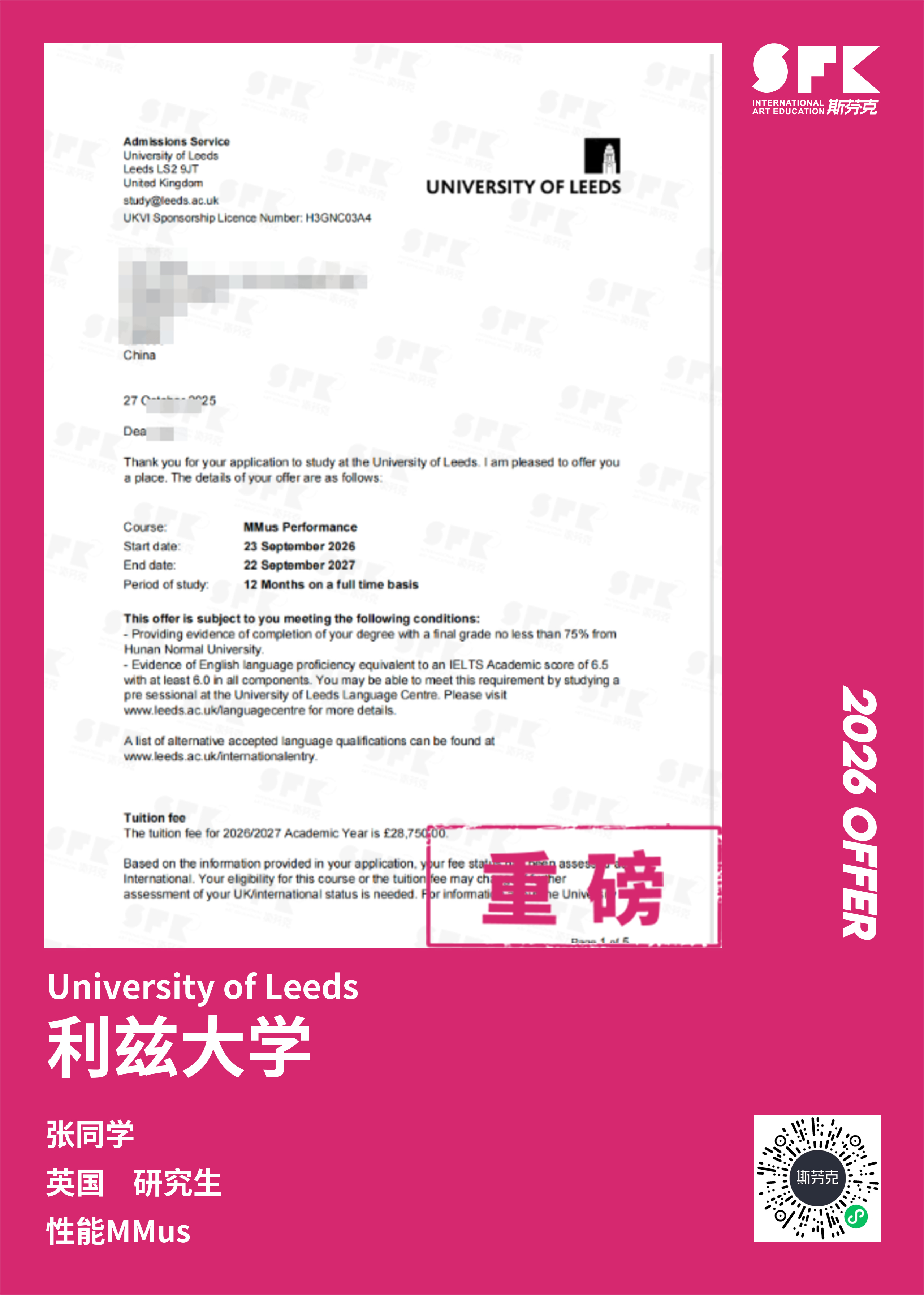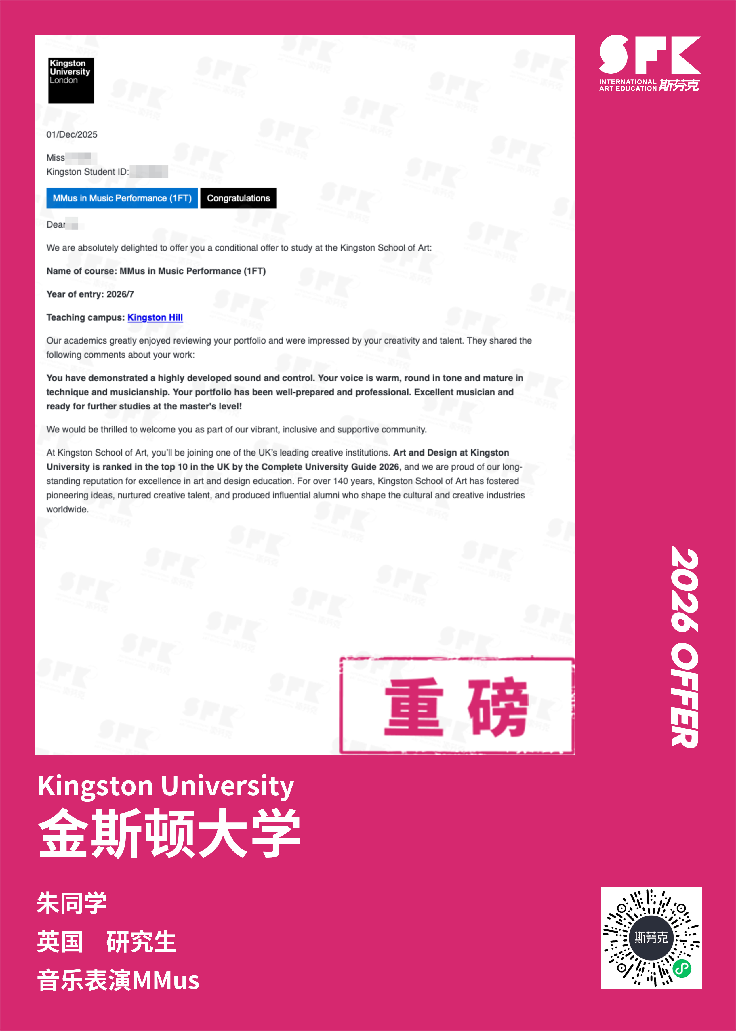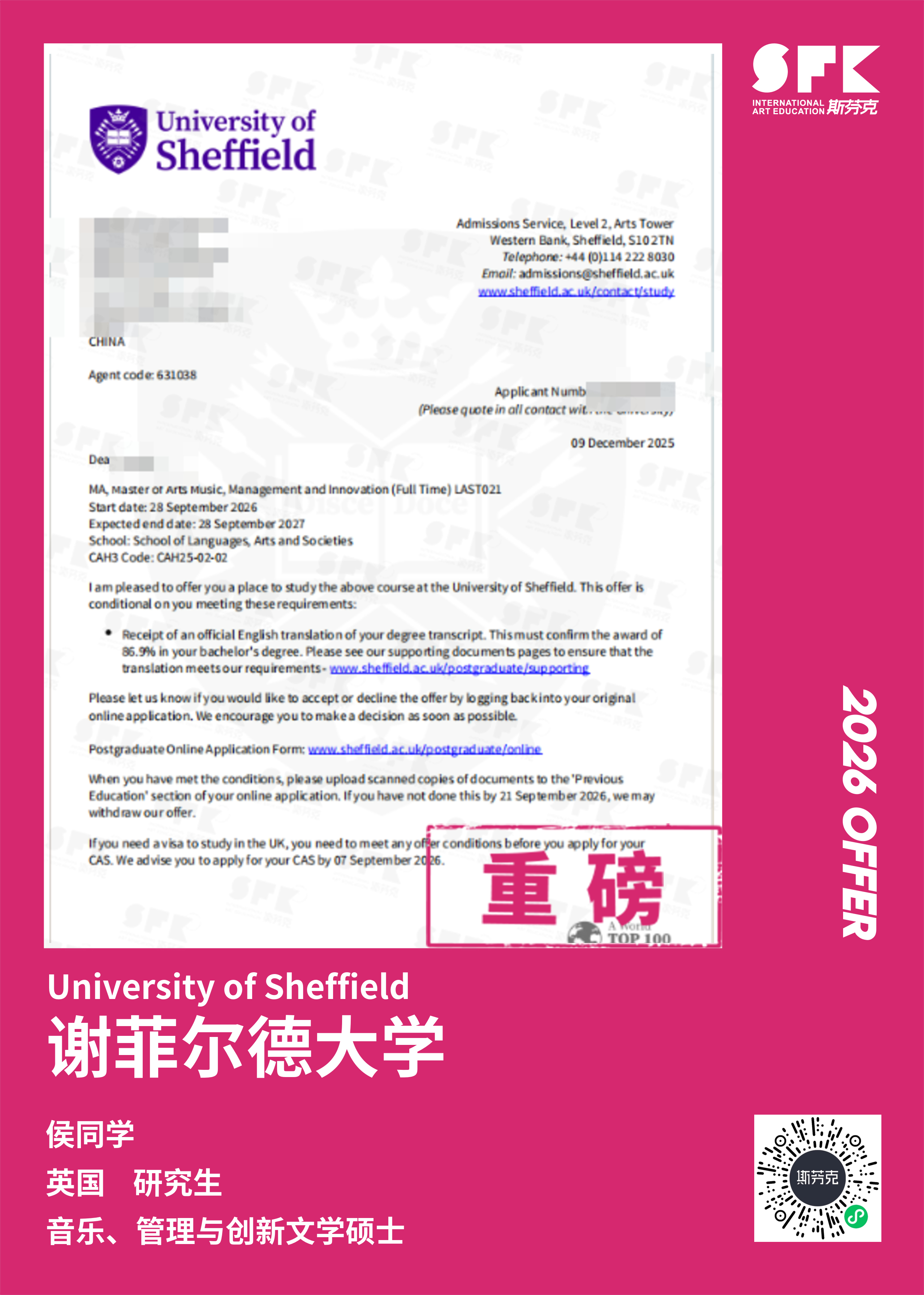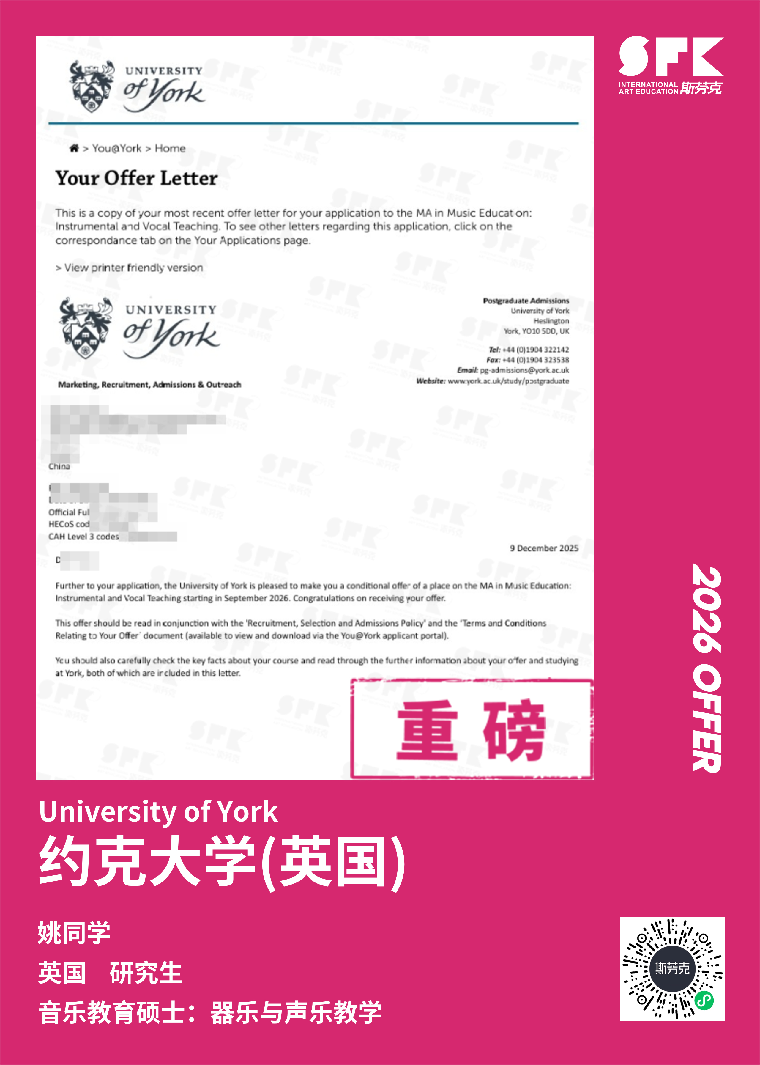 斯芬克音乐已帮助学员获得越来越多的国外音乐院校Offer